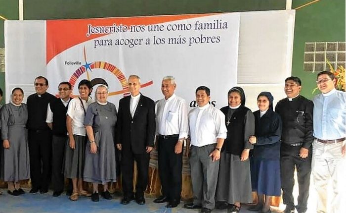 Bischof Robert Prevost (Mitte) bei einem Treffen der vinzentinischen Familie in Chiclayo, Sr. Clara-Maria Siesquén (vierte von rechts)